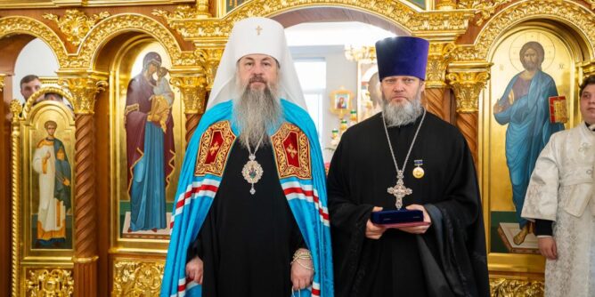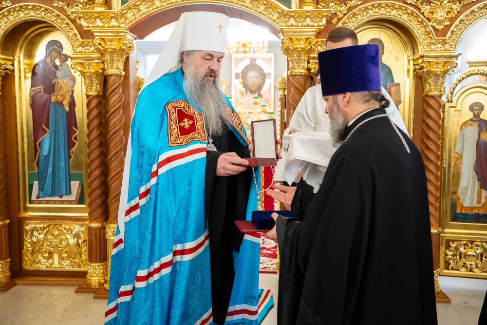 По отпусте литургии глава Пензенской митрополии обратился к собравшимся и в завершении выразил благодарность за понесенные труды настоятелю храма протоиерею Николаю Грошеву и вручил епархиальную награду — медаль святителя Иннокентия, епископа Пензенского I степени. От себя лично подарил юбиляру наперсный крест.