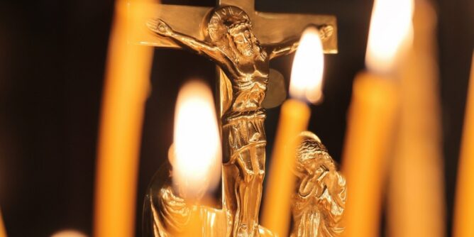 В конце службы все верующие подходят поклониться перед Распятием, выставленное на середину храма.