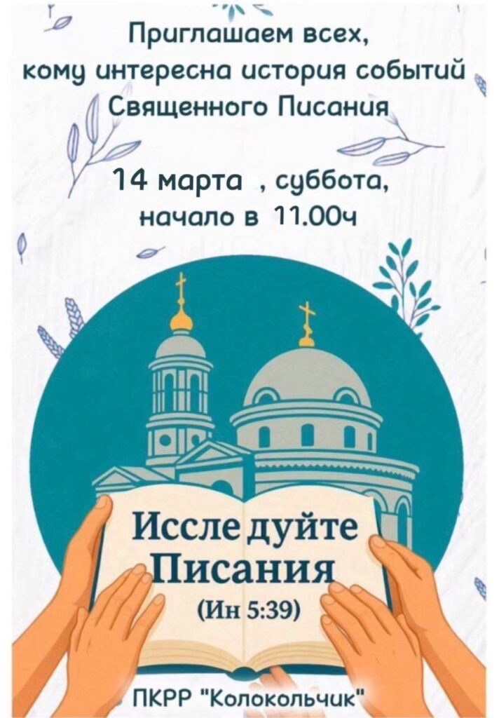 Встреча библейского кружка состоится 14 марта в 11:00.